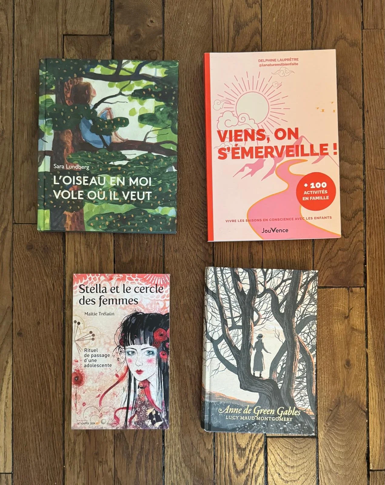 * Stella et le cercle de femmes de Maïté Trëlaun. Roman initiatique sur les ménarches. Je recommande de lire avec sa fille et de laisser les chapitre ouvrir des espaces de discussion. Pas avant les prémisses de l’adolescence.