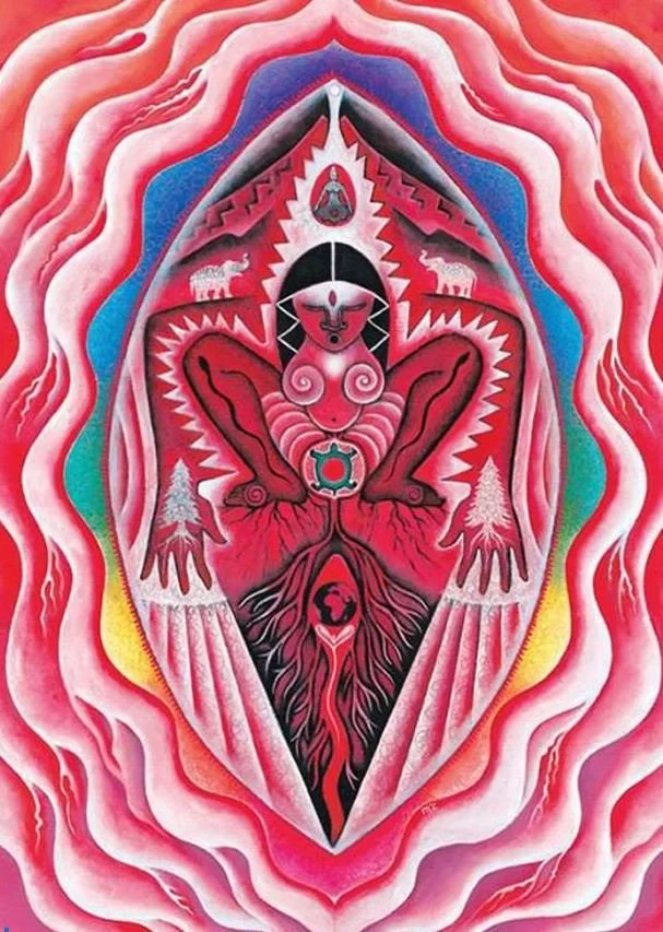 Je suis celle qui tient l’espace dans l’Hiver Intérieur qu’est le Post Partum que ça soit après une naissance ou une IVG/ IMG/ Arrêt naturel de grossesse. Je suis cette Doula du détricotage et du tissage des périodes obscures. Ces Hivers Intérieurs que l’on traverse également lors de l’arrivée du sang de nos Menstruations et de la Ménopause. Je suis cette Doula, qui accompagne le sang, les larmes et les Pas.sages identitaires profonds.